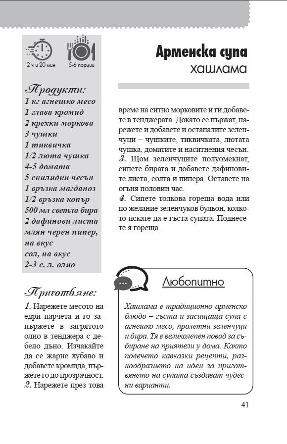 Готвенето на супите е и забавление – с всяка рецепта разказваме по нещо интересно, връщаме ви назад във времето, срещаме ви с хора и рекорди, а за още настроение ви поднасяме и чудесни графики.