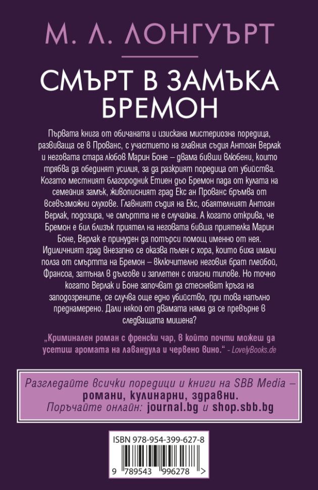 „Криминален роман с френски чар, в който почти можеш да усетиш аромата на лавандула и червено вино.“